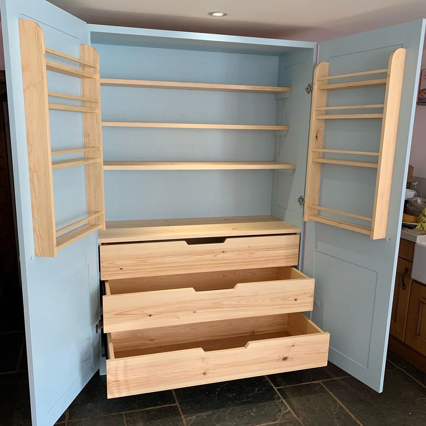 Bespoke kitchens are individually designed and handcrafted specifically for your space, needs and style preferences. Unlike mass-produced fitted kitchens with standard dimensions, our bespoke approach means every cabinet, drawer and detail is custom-made to maximise your exact room dimensions and personal requirements throughout your Devon home.